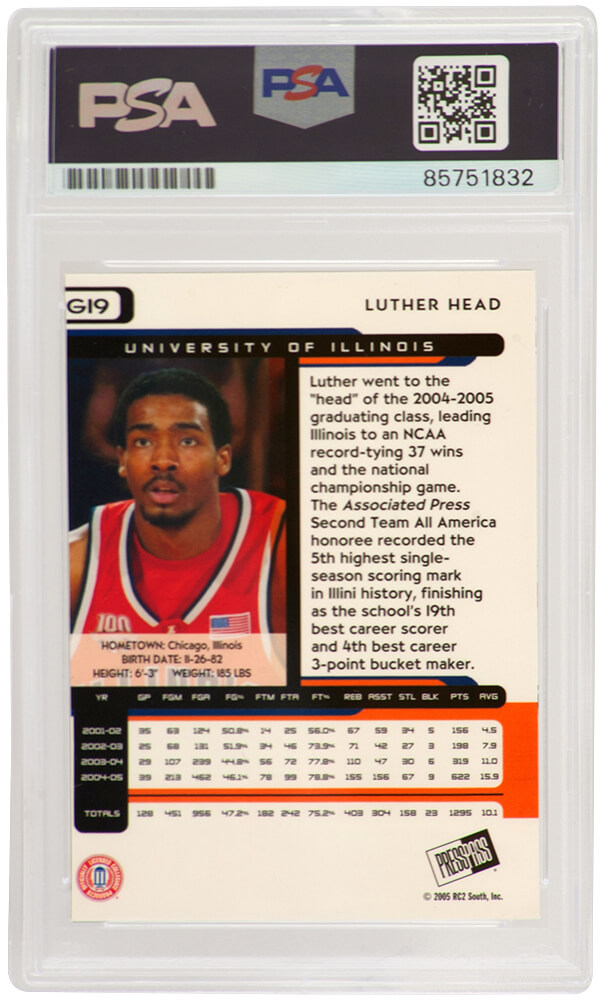 Luther Head Signed Illinois 2005 Press Pass Gold Rookie Basketball Card #G19 – (PSA Encapsulated)