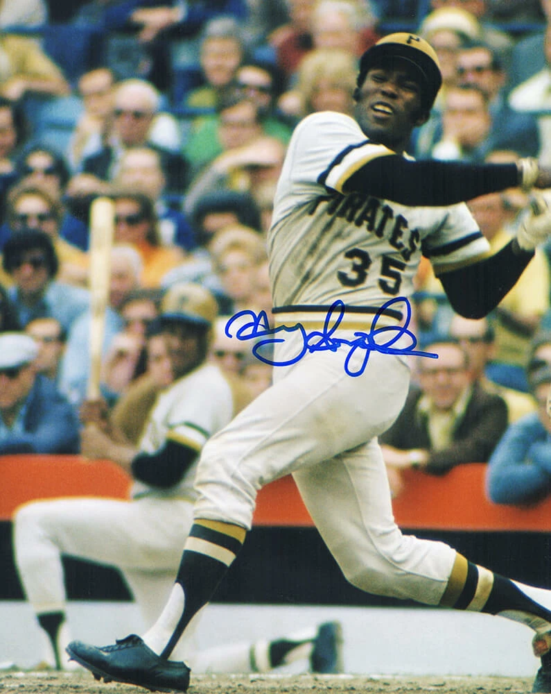 Manny Sanguillen Signed Pirates Swinging 8×10 Photo