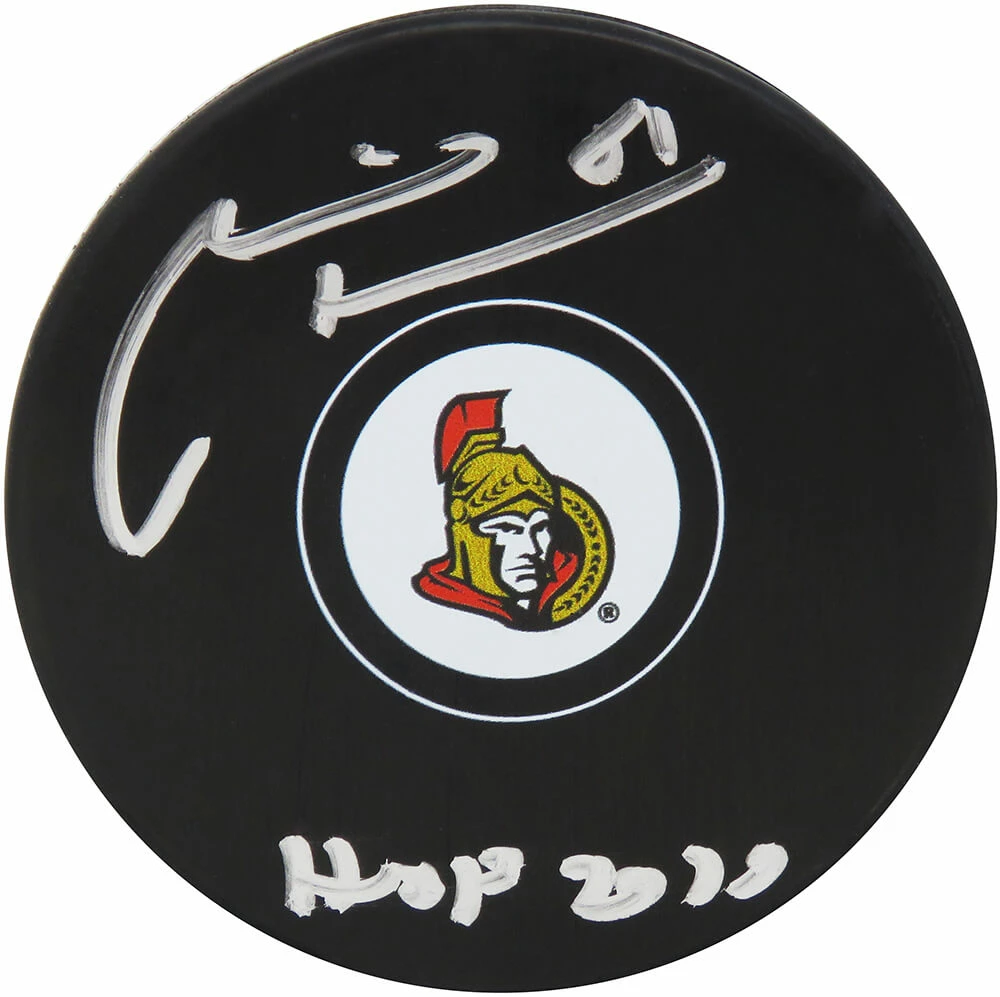 Marian Hossa Signed Ottawa Senators Logo Hockey Puck w/HOF 2020