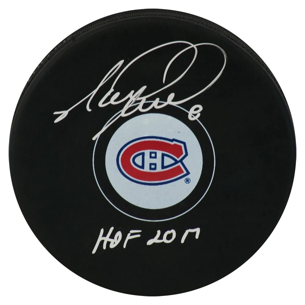Mark Recchi Signed Montreal Canadiens Logo Hockey Puck w/HOF 2017
