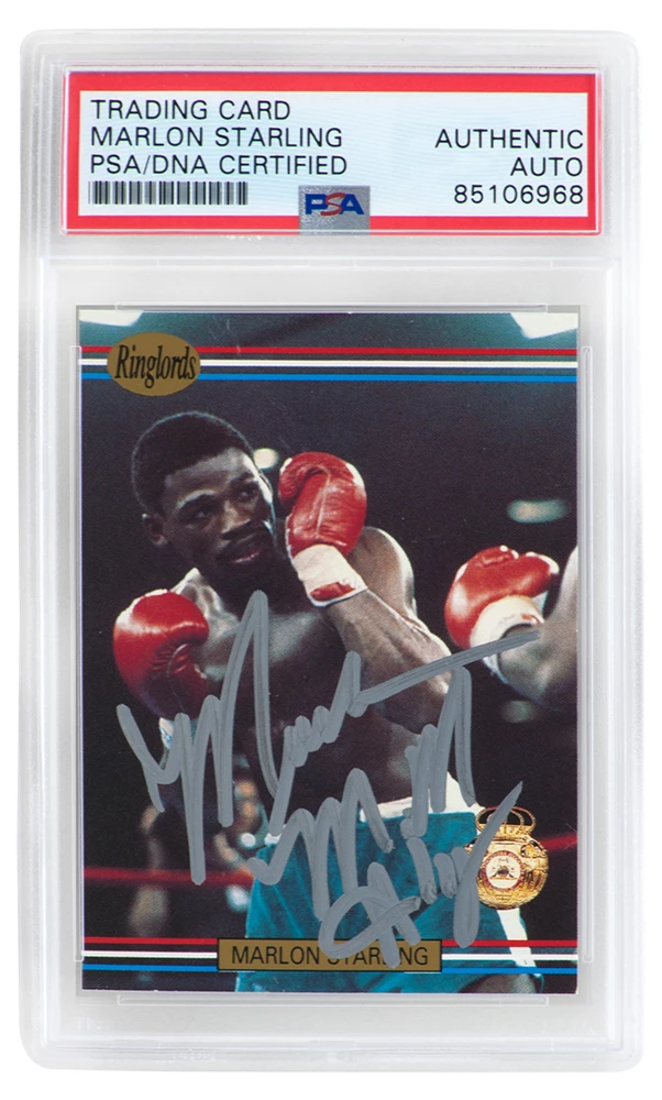 Marlon Starling signed 1991 Ringlords boxing trading card #28. The card has been authenticated and encapsulated by PSA/DNA and the number can be verified online.