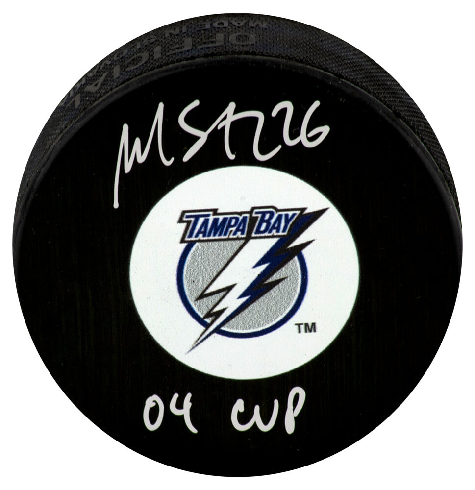 Martin St. Louis Signed Tampa Bay Lightning Medium Logo Hockey Puck w/04 Cup