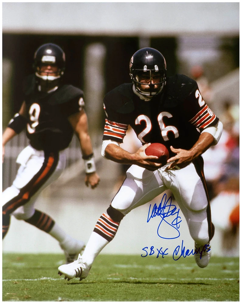 Matt Suhey signed Chicago Bears action 16×20 photo with ‘SB XX Champs’ inscription. Item comes with a Schwartz Sports Memorabilia tamper-proof numbered hologram and Certificate of Authenticity which can be verified online.