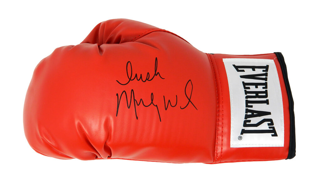 Micky Ward signed Everlast red boxing glove with ‘Irish’ inscription. Item comes with a Schwartz Sports Memorabilia tamper-proof numbered hologram and Certificate of Authenticity which can be verified online.