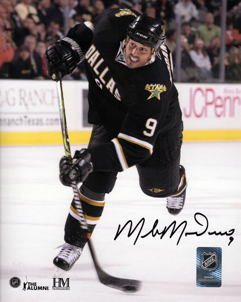 Mike Modano Signed Dallas Stars Black Jersey Slap Shot Action 8×10 Photo
