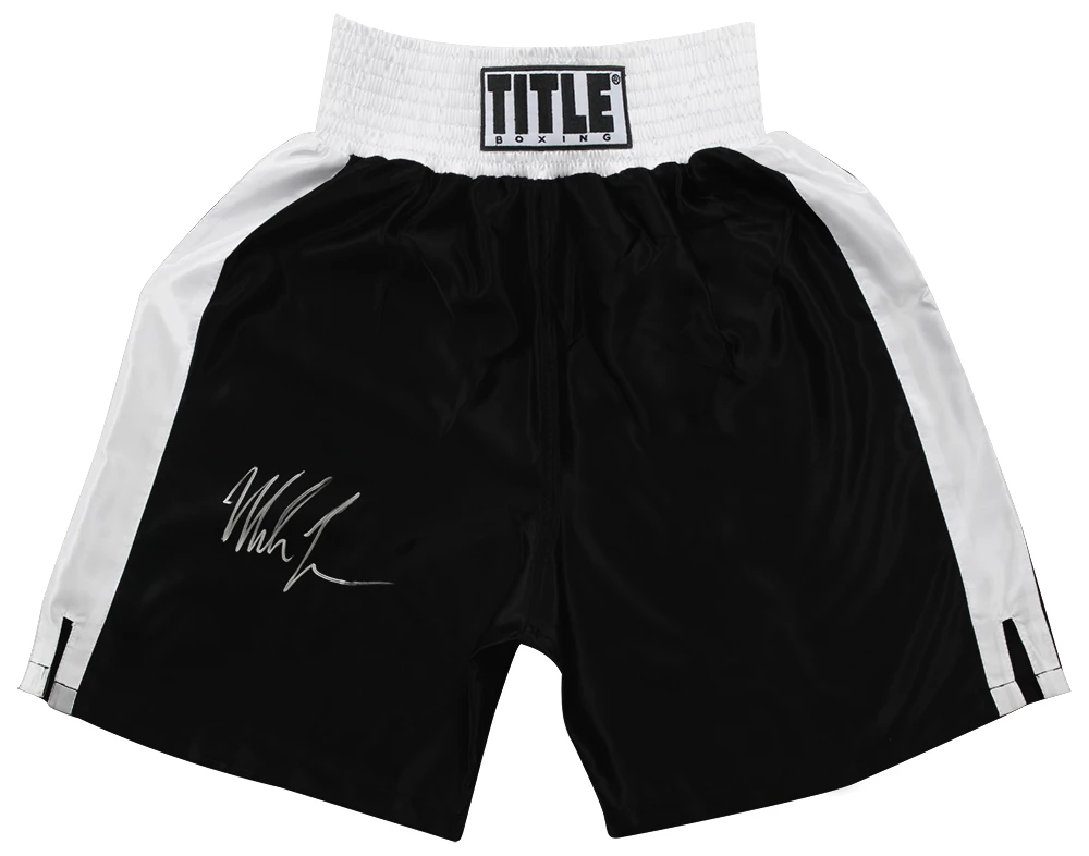Mike Tyson Signed Title Black With White Trim Boxing Trunks