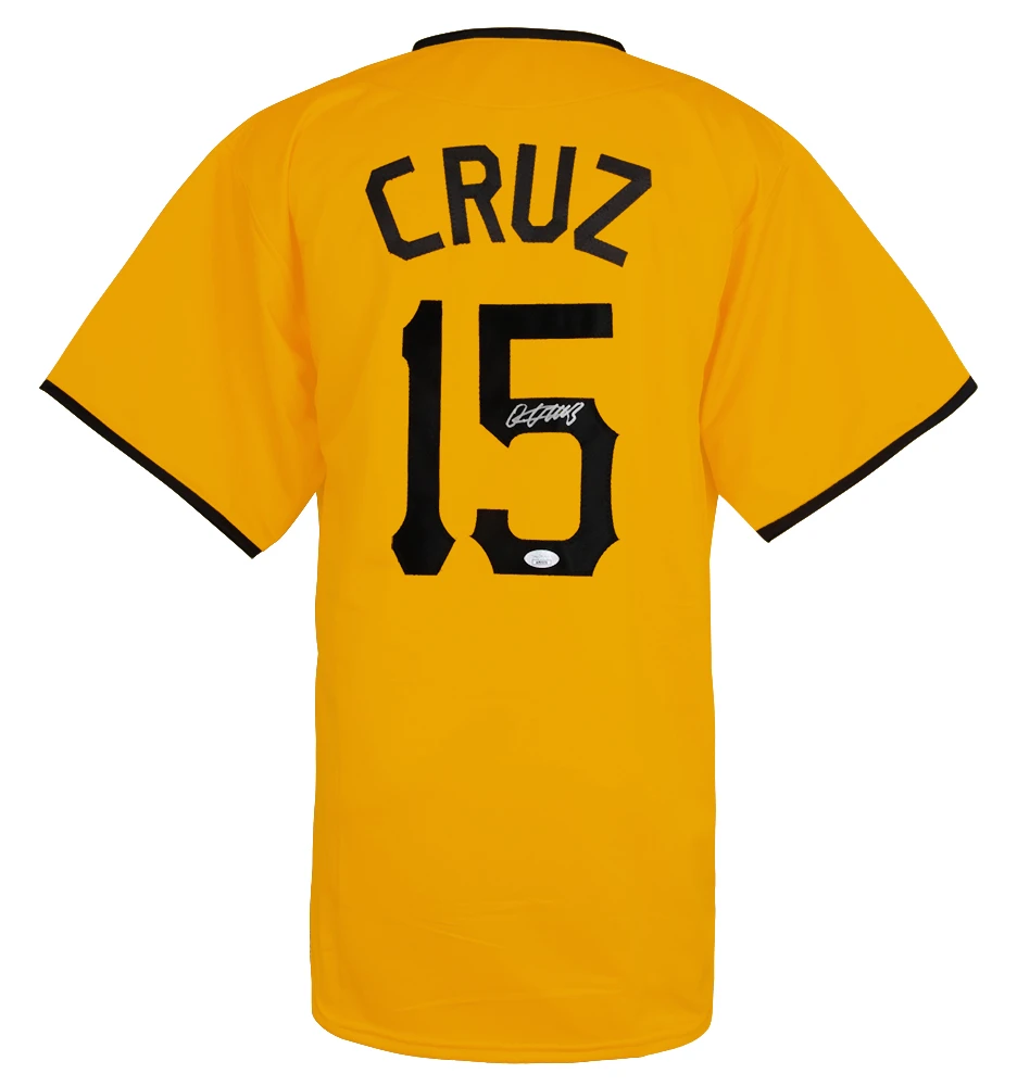 Oneil Cruz signed yellow custom baseball jersey. Item comes with a JSA (James Spence Authentication) tamper evident numbered sticker and matching Certificate of Authenticity which can be verified online.