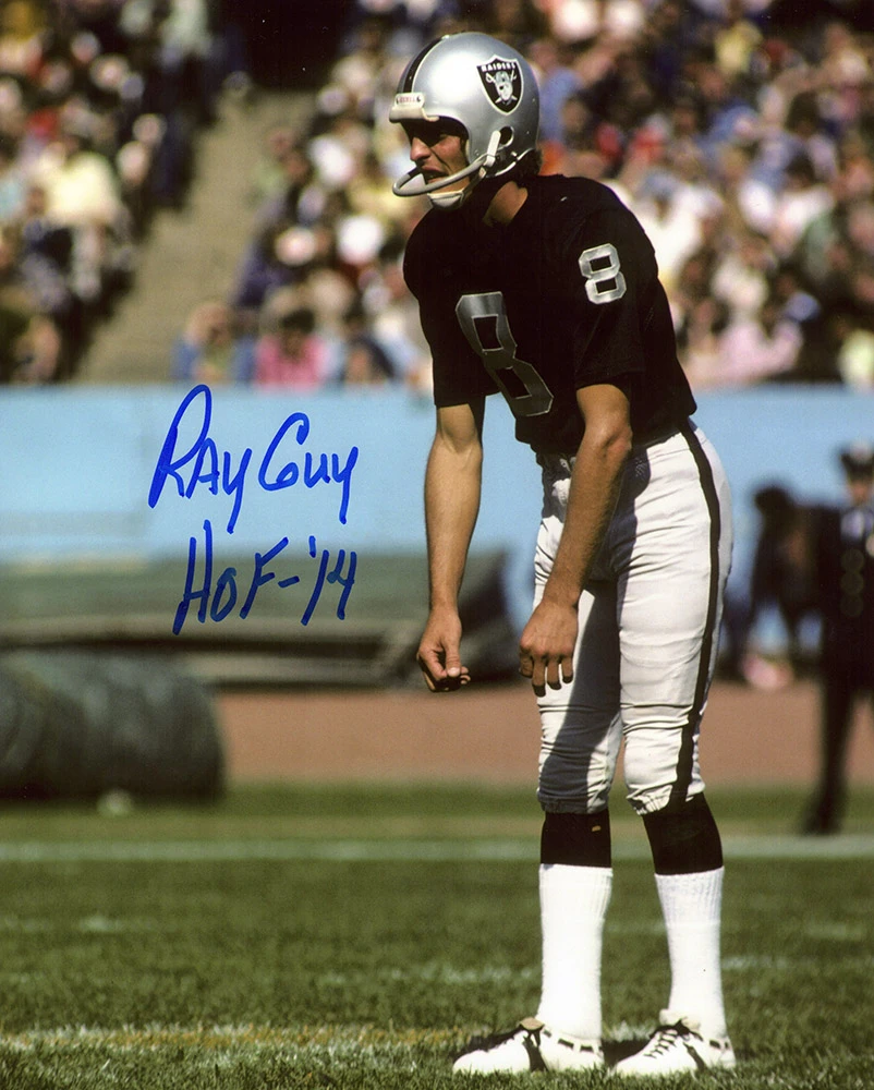 Ray Guy Signed Raiders Punter Stance Action 8×10 Photo w/HOF’14