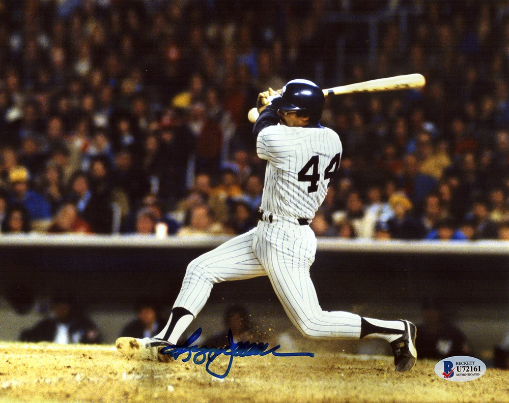 Reggie Jackson signed New York Yankees white jersey swinging action 8×10 photo. Item comes with a Beckett Authentication tamper evident numbered sticker and matching Certificate of Authenticity which can be verified online.