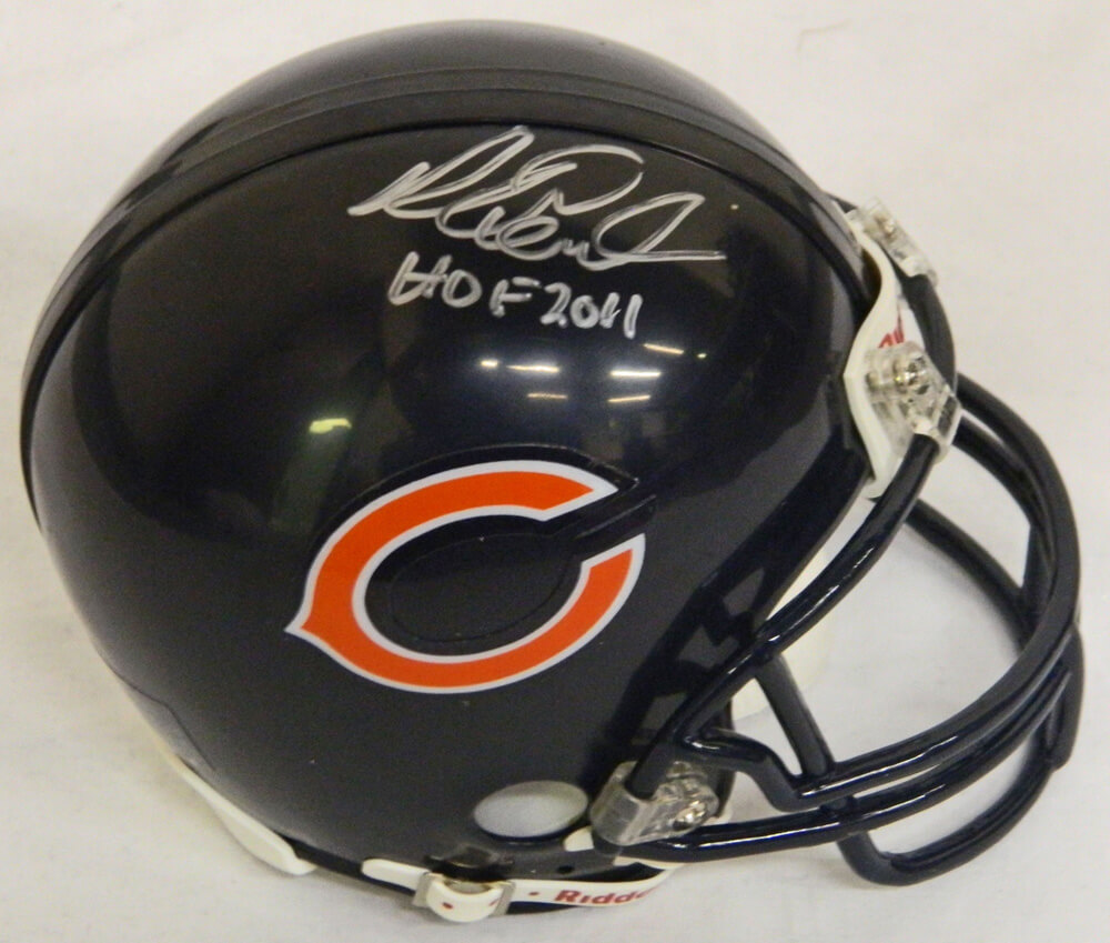 Richard Dent signed Bears Riddell replica mini helmet with ‘HOF 2011’ inscription. Item comes with a Schwartz Sports Memorabilia tamper-proof numbered hologram and Certificate of Authenticity which can be verified online.