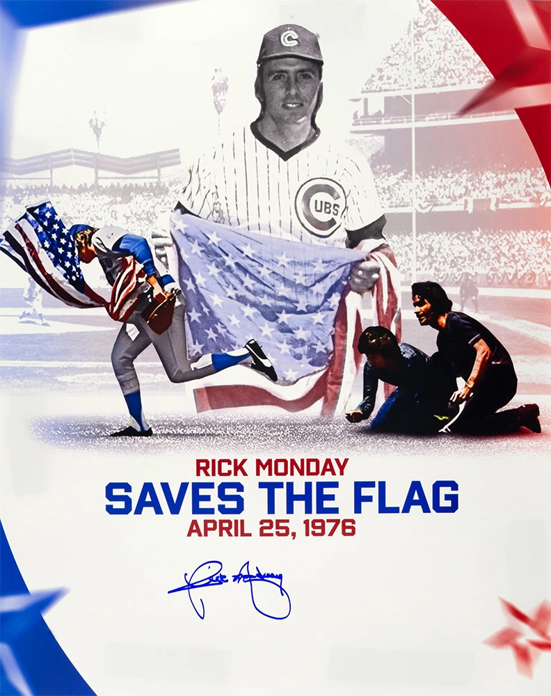 Rick Monday Signed Chicago Cubs Save American Flag Collage 16×20 Photo