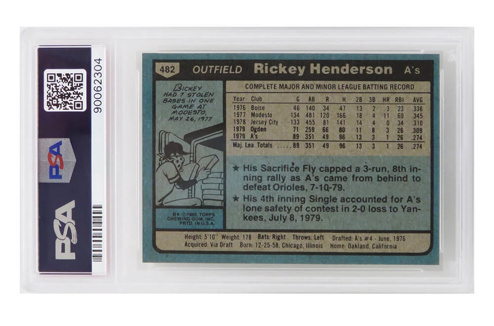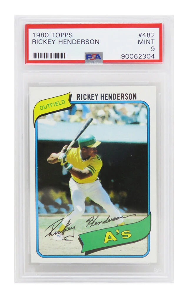 Rickey Henderson (Oakland A’s) 1980 Topps Baseball #482 RC Rookie Card – PSA 9 MINT (B)