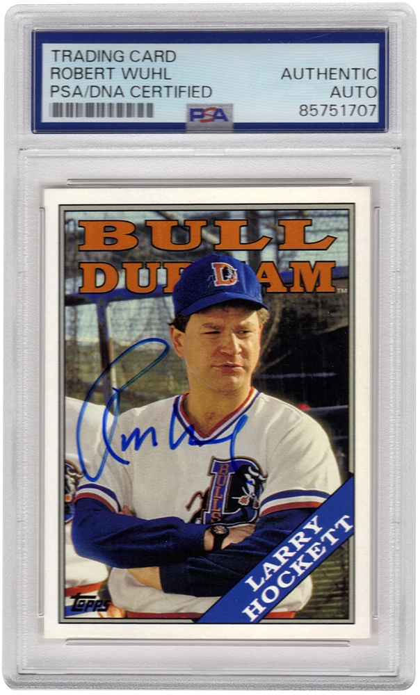 Robert Wuhl signed Bull Durham 2016 Topps Archives Larry Hockett trading card #BD-LH. The card has been authenticated and encapsulated by PSA/DNA and the number can be verified online.