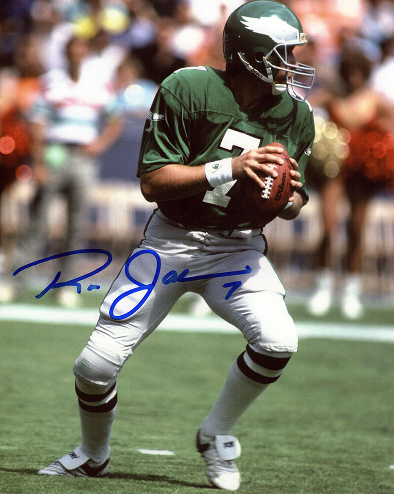 Ron Jaworski Signed Eagles Green Jersey Dropback Action 8×10 Photo