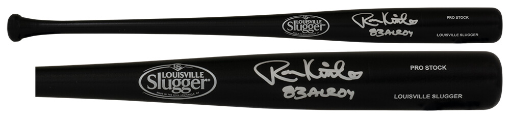 Ron Kittle signed Louisville Slugger Pro Stock black baseball bat with ’83 AL ROY’ inscription. Item comes with a Schwartz Sports Memorabilia tamper-proof numbered hologram and Certificate of Authenticity which can be verified online.