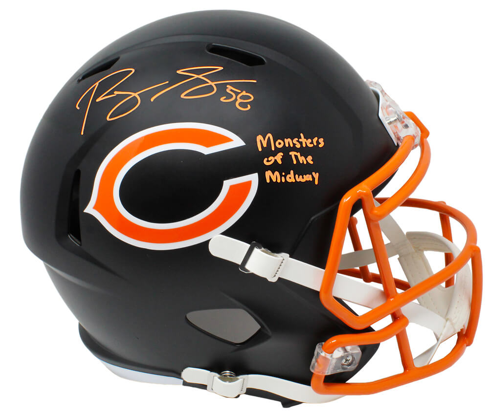 Roquan Smith signed Chicago Bears flat black matte Riddell speed full size replica helmet with ‘Monsters of the Midway’ inscription. Item comes with a Schwartz Sports Memorabilia tamper-proof numbered hologram and Certificate of Authenticity which can be verified online.