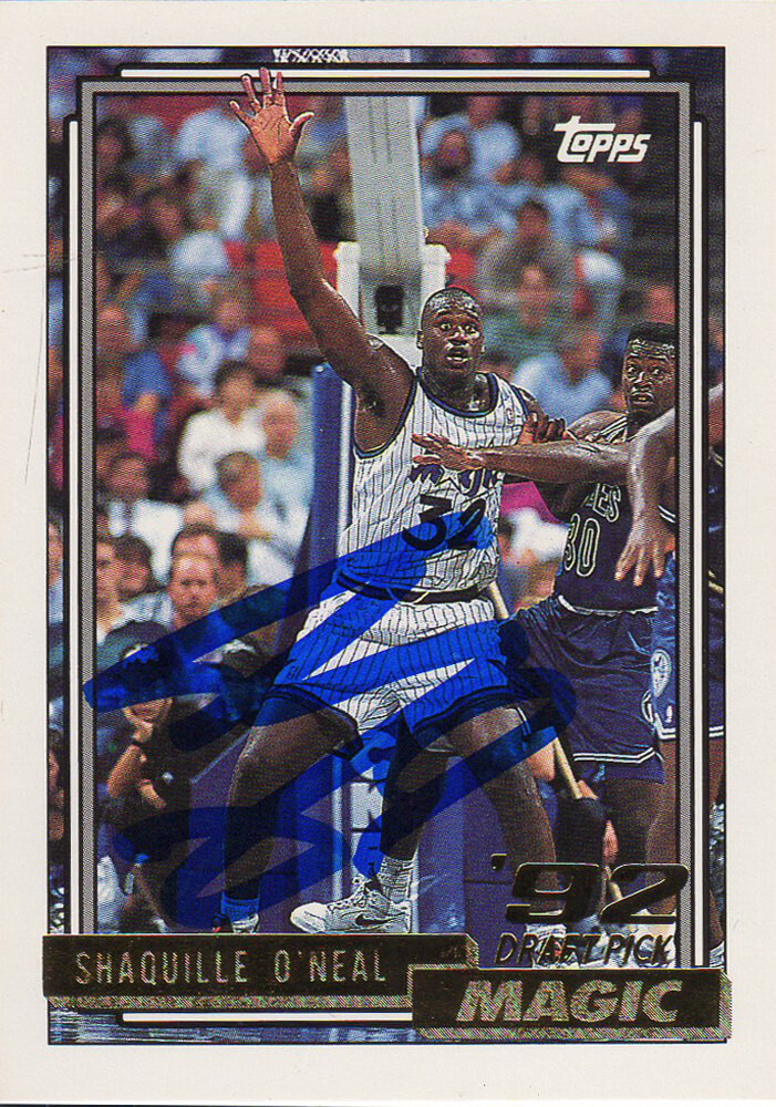 Shaquille O’Neal signed Orlando Magic 1992 Topps Gold rookie card #362. Item comes with a Schwartz Sports Memorabilia tamper-proof numbered hologram (on back of physical card) and Certificate of Authenticity which can be verified online.