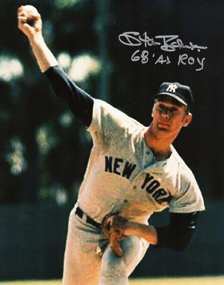 Stan Bahnsen signed Yankees pitching 8×10 photo with ’68 AL ROY’ inscription. Item comes with a Schwartz Sports Memorabilia tamper-proof numbered hologram and Certificate of Authenticity which can be verified online.