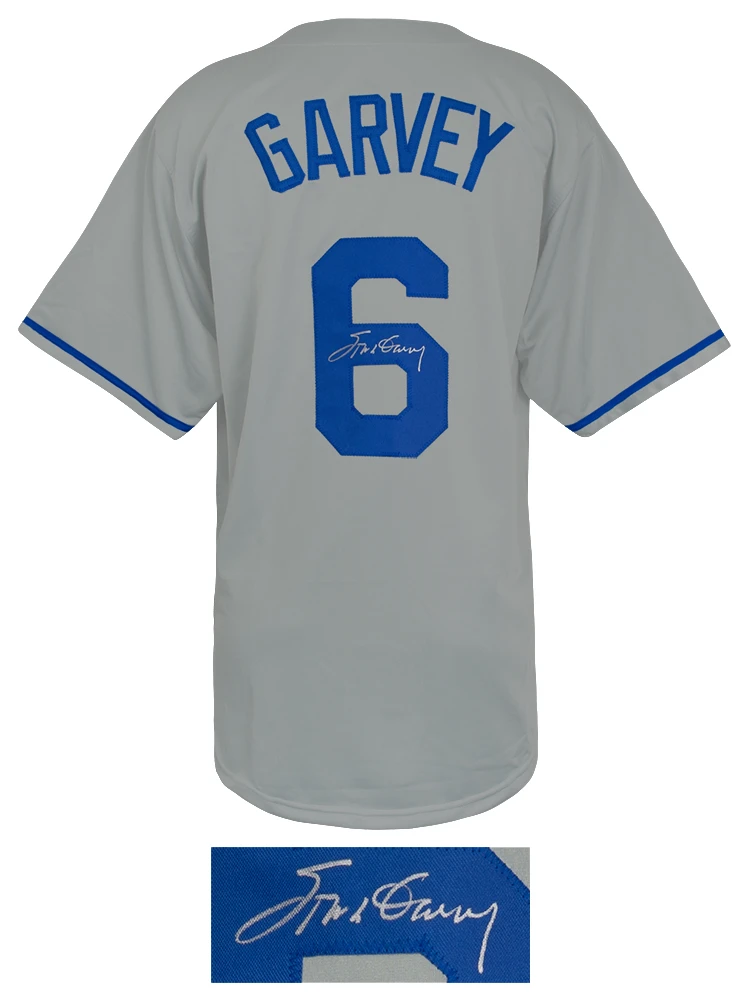 Steve Garvey signed grey custom baseball jersey. The jersey is size X-Large. Item comes with a Schwartz Sports Memorabilia tamper-proof numbered hologram and Certificate of Authenticity which can be verified online. Jersey is size XL.
