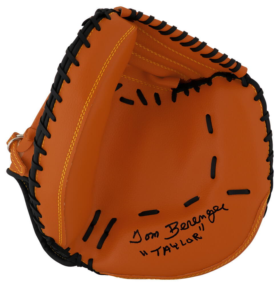 Tom Berenger signed brown baseball catchers glove with ‘Taylor’ character name inscription. In the hit movie Major League, Tom Berenger plays character Indians catcher Jake Taylor. Item comes with a Schwartz Sports Memorabilia tamper-proof numbered hologram and Certificate of Authenticity which can be verified online.