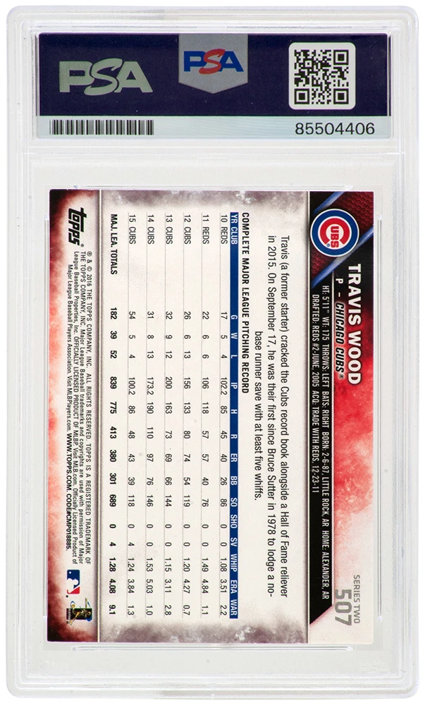 Travis Wood Signed Chicago Cubs 2016 Topps Baseball Card #507 (Limited Edition) – (PSA Encapsulated)